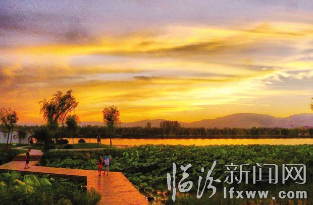 8月23日,美麗的汾河公園在晚霞的襯托下分外妖嬈,優美的生態景觀讓前來游玩的市民嘆為觀止。 記者 蘇亞兵 攝