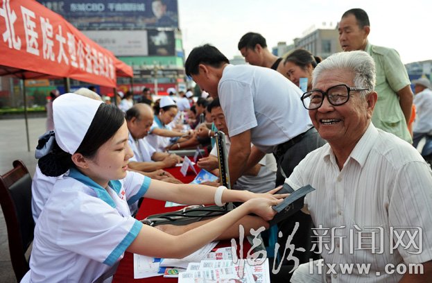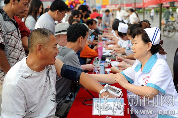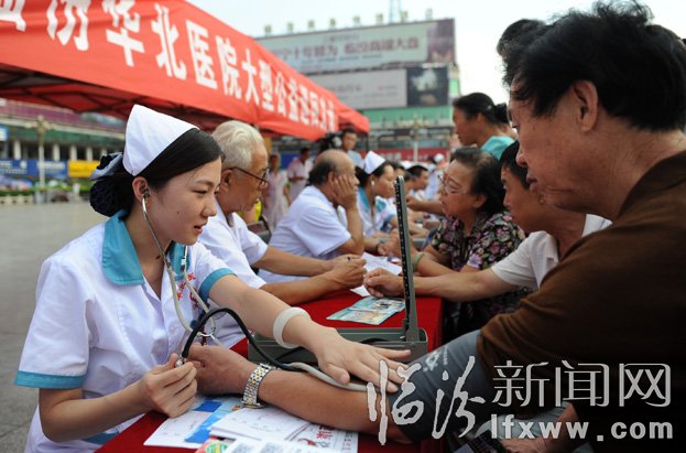 9月2日,在我市平陽廣場,臨汾華北醫院的愛心志愿者服務隊在為市民測量血壓。當日,主題為“關愛健康,奉獻社會”臨汾華北醫院愛心志愿者服務隊大型巡回義診活動舉行,10余名專家現場接受群眾咨詢和診治,同時也將走進市區各個街道和社區,進行健康知識普和義診,打造群眾滿意醫院。 記者 閆銳鵬 攝