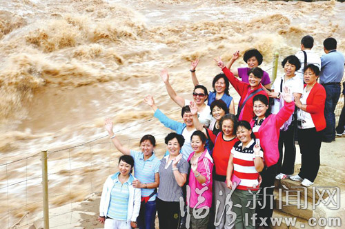 日前,眾多游客在吉縣黃河壺口瀑布景區合影留念。連日來,黃河壺口瀑布壯美秋汛景觀吸引了眾多老年游客錯峰出游,該景區也迎來了節日旅游高峰。 呂桂明 攝