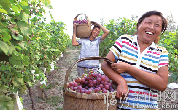 9月17日,堯都區土門鎮的千畝葡萄種植基地到處都能看到農民朋友采摘葡萄時的喜悅。該鎮南社村村民邢登云說,今年受春寒的影響,葡萄的產量有所下降,但收購的價格有所上升,所以還是獲得了豐收。張旦 攝