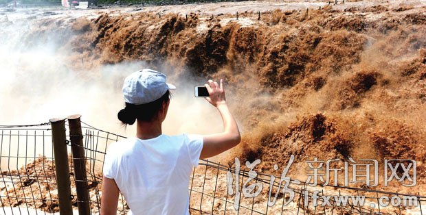 8月21日,吉縣奔騰咆哮的黃河壺口瀑布吸引了眾多游客。受上游降雨增多的影響,黃河干流水量大增,吉縣壺口瀑布主副瀑布連成一線,形成壯美瀑布群,氣勢磅礴。 趙俊堂 呂桂明攝