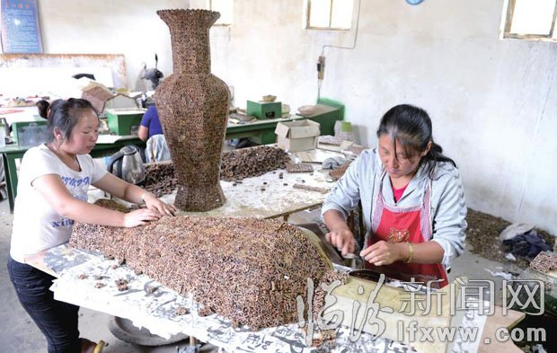 近日,隰縣城南鄉民間文化產業專業合作社,村民在加工山核桃工藝品。該合作社是一個集民間文化產業、文化產品、工藝美術品生產、制作、研發為一體的合作機構,產品涉及根雕、樹皮字畫、山核桃工藝品、刺繡等20多個類別200余個品種,先后帶動當地農民150余人就業,以特色文化藝術帶動經濟的發展。 本報記者 閆銳鵬 攝