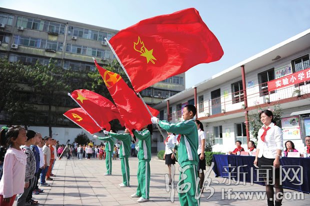 10月10日,堯都區實驗小學的師生在進行傳遞“國旗、黨旗、團旗、隊旗”四面旗幟活動。當日,堯都區實驗小學舉行了“紅領巾相約中國夢”慶祝中國少年先鋒隊建隊64周年紀念活動,通過重溫誓詞、紅色旗幟傳遞、追尋中國少年先鋒隊的革命光輝歷程,接受愛國主義教育洗禮,激發全體少先隊員樹立遠大理想、健康快樂成長。