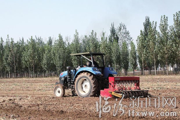 10月2日,曲沃縣楊談鄉楊談村村民正利用農機搶種小麥。近年來,我市大力推行秸稈還田、土地深松、小麥免耕播種作業等先進技術,規范實施秸稈覆蓋、免耕播種、土地深松等配套的保護性耕作核心技術,全力提高秋收秋種速度和質量。 本報記者 范韶華 攝