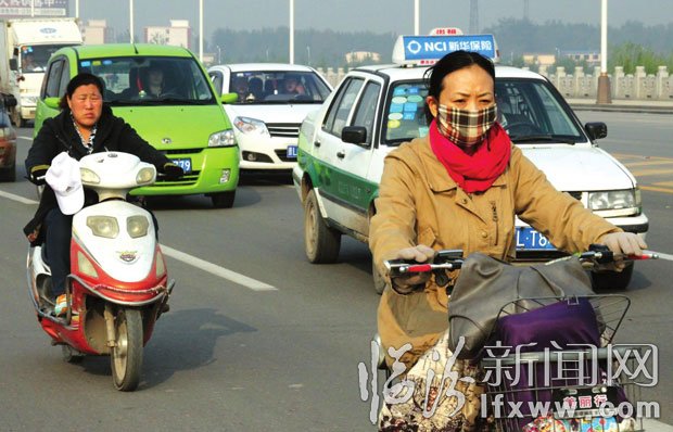 10月21日,記者從市氣象臺獲悉,受較強冷空氣影響,未來10天我市將迎來兩次降溫天氣過程。圖為許多騎車子的市民在早晨都穿上了厚厚的外套來保暖。記者 郝海軍 攝