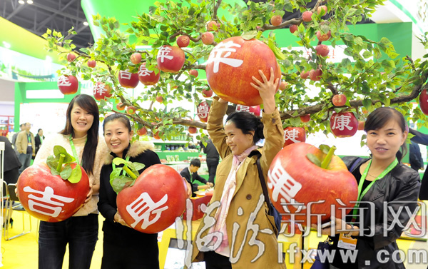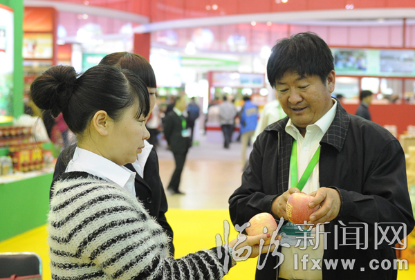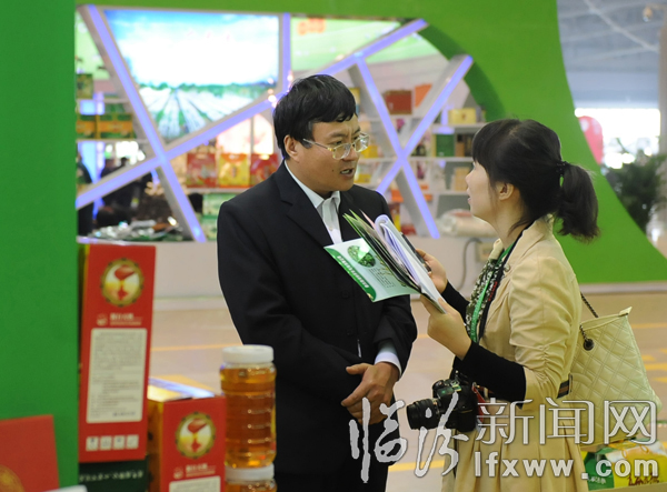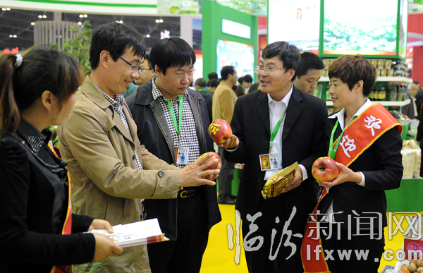 日前,在第三屆中國(山西)特色農產品交易博覽會上,寓意“綠色田園”和“黃色收獲”的臨汾展廳格外引人注目,500多平方米的展場擺滿了臨汾獨具特色的農產品。吉縣蘋果、隰縣香梨、永和紅棗……這些特色優質農產品一亮相,就吸引了廣大客商和太原市民的眼球。據了解,參加此次農博會的我市122家企業的488個品種的產品,以獨特、新穎的展示和推介,讓更多的采購商了解臨汾產品、購買臨汾產品,讓臨汾產品走向更廣闊的市場。