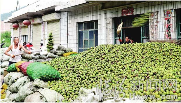 近年來,古縣以“一縣一業、一村一品”為主導產業,大力實施“長抓核桃、短抓畜牧”經濟轉型發展戰略,當地合作社從農民手中積極回收青皮核桃,經過去皮、晾曬、包裝等工序,把“古縣核桃”打造成為全國知名品牌,不斷提高農民收入。圖為該縣東溝合作社的農民正在清理剛收購的核桃。 張天杰 攝