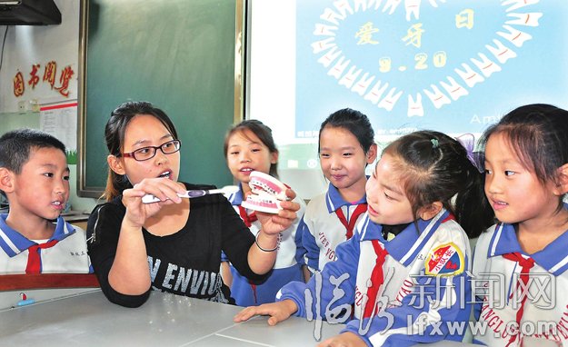 當日下午,記者在該校一年級三班教室里看到,學生們正在認真聆聽班主任賈嬋媛老師講解保護牙齒的相關(guān)知識。