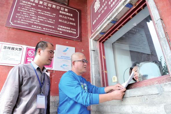市紀委工作人員在堯廟景區售票處對公款消費等進行檢查。