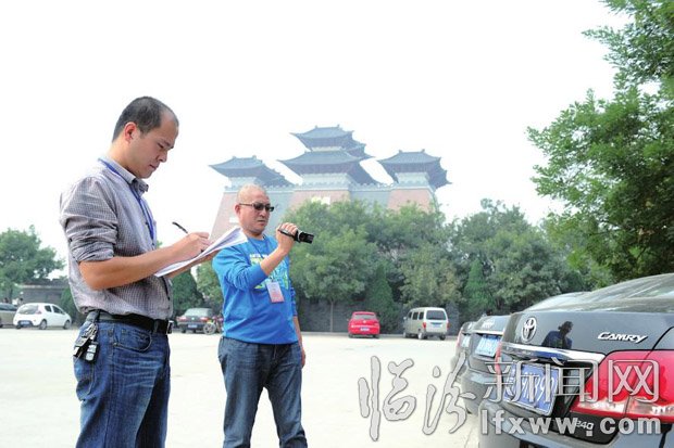 市紀委工作人員在華門景區對可疑公務車輛進行登記核實。