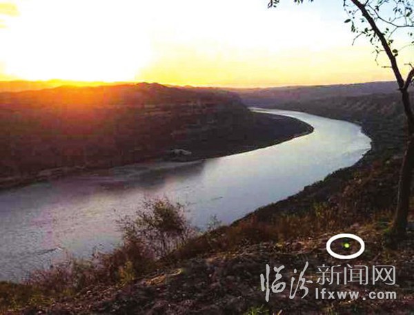假日期間,記者與友人游覽位于永和打石腰鄉黃河時,在翻看手機拍攝的照片中發現有一綠色發光點。前去尋找,卻什么也沒有發現,在場的人都感到驚奇。太陽光分赤、橙、黃、綠、青、藍、紫,沒有反射物,卻能拍出神奇的光,乾坤灣太神奇了。