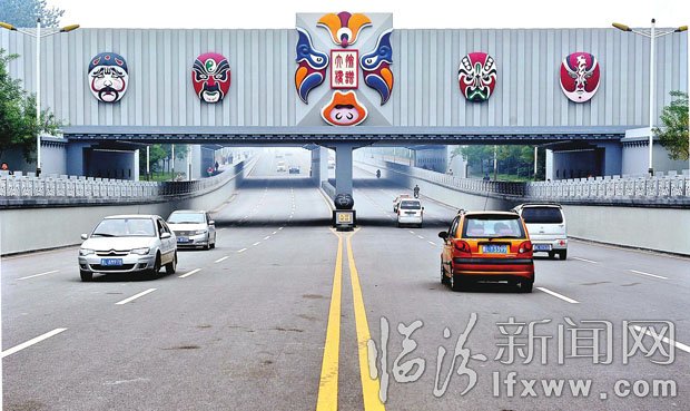10月31日,市區(qū)“臉譜大橋”竣工通車。該座大橋是我國首座展現(xiàn)戲曲文化的橋梁,全長647米,橫跨同蒲鐵路,是城市建設(shè)和歷史文化相結(jié)合的標(biāo)志性建筑。設(shè)計(jì)者將橋的四周分別設(shè)置4組高7.2米,長、寬各3.3米的巨型臉譜雕塑,花池邊和小擋墻上分別雕刻不同臉譜860個(gè)和620個(gè)小型花崗巖欄桿,在1號(hào)、2號(hào)橋涵兩側(cè)也裝飾大型戲劇臉譜,在兩橋的隔離帶還有24個(gè)臉譜雕塑,整座大橋共雕刻鑲裝3500多個(gè)戲曲臉譜,隨著“臉譜大橋”的通車,將為市民展現(xiàn)臨汾深厚的文化底蘊(yùn)和精神風(fēng)貌,同時(shí)還能有效緩解城市道路交通的壓力。 記者閆銳鵬攝