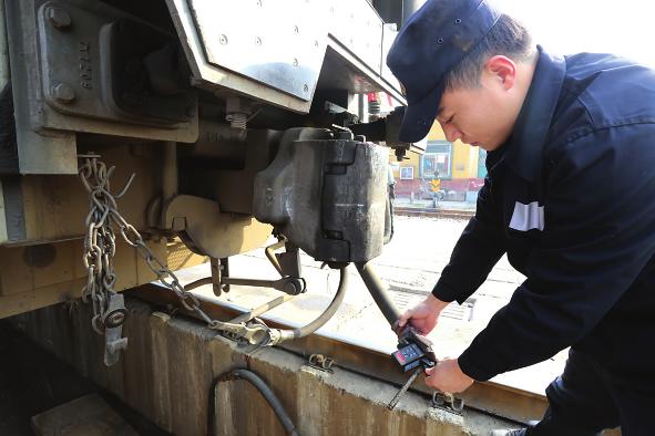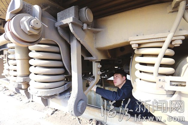 11月5日上午,臨汾運用車間的師傅們和往常一樣對停靠在車庫的列車進行“體檢”,他們?yōu)榱熊嚒绑w檢”的方法很特別,主要是“看”和“聽”,看螺絲的封漆、看輪子異樣,用特殊的小錘子敲各部件,聽各部件發(fā)出的聲音是否正常。多年的經(jīng)驗使他們的耳朵和眼睛都有了不同尋常的“功能”,他們“看過”和“聽過”的列車從未出現(xiàn)過故障。他們每天三班交替,每天進庫的車大約有8-9趟次,他們要對每一輛開進臨汾運用車間的車進行體檢。