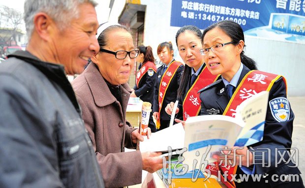 近日,襄汾縣司法局在鄧莊鎮(zhèn)農(nóng)村集市開(kāi)展“送法下鄉(xiāng)”活動(dòng),以圖表、漫畫(huà)和現(xiàn)場(chǎng)咨詢的方式,讓廣大農(nóng)民朋友知法、懂法、守法,共建和諧社會(huì)。圖為該局工作人員在向群眾講解法律知識(shí)。記者閆銳鵬攝
