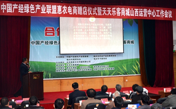 臨汾新聞網訊 (記者 王偉) 11月16日,中國產經綠色產業聯盟惠農電商贈店儀式暨天天樂客商城山西運營中心工作會議在市區育花園大酒店召開,50余名企業家和社會名流齊聚一堂,共商擴展臨汾電商市場大計,致力打造一體化“雙店”經營模式。