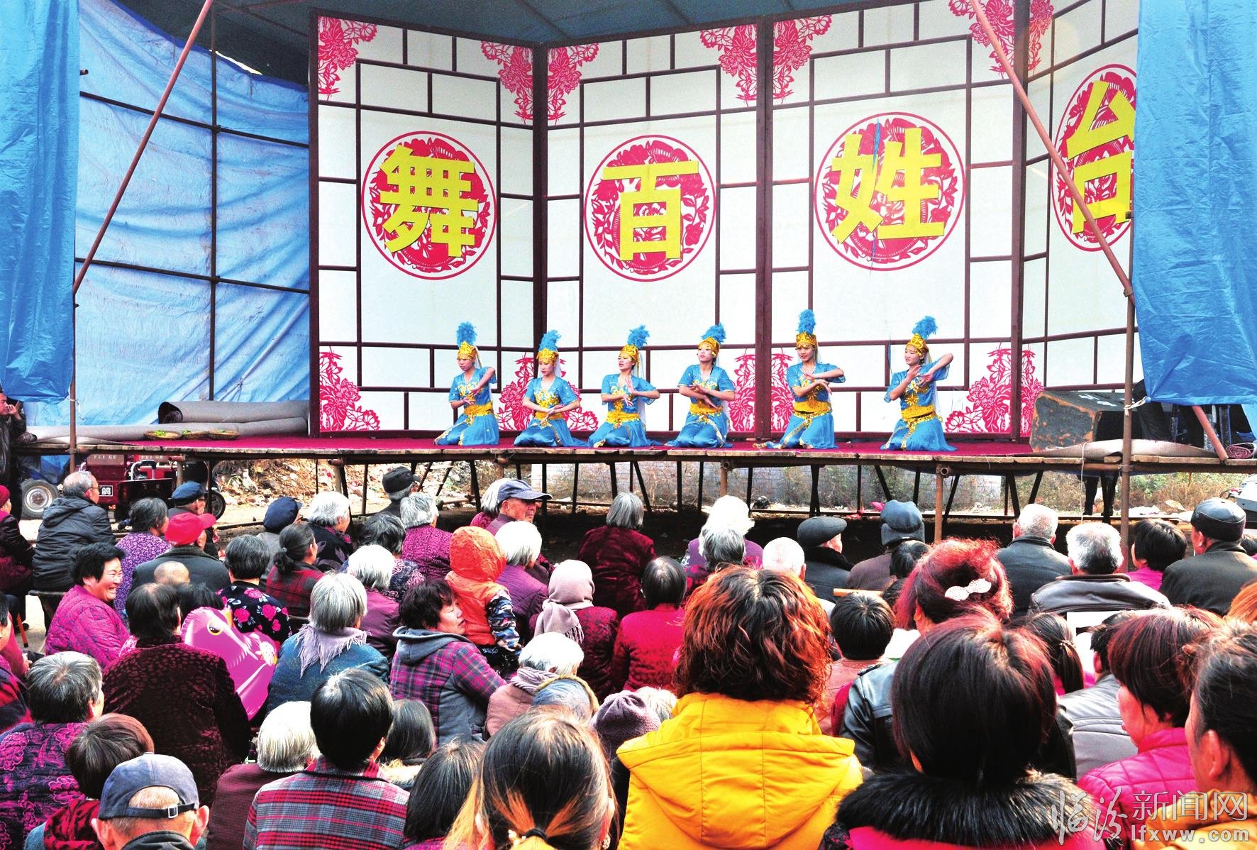 十一月二十日, 在曲沃縣史村鎮西常村廟會舞臺, 縣文化館組織演員為群眾表演舞蹈《豐收》日前該縣文廣新局以政府搭臺專業人員輔導群眾唱大戲的形式開辦了“百姓舞臺想上就來”活動他們利用節假日逢集逢會巡演目前已成功組織專業演出九場群眾自發編排演出節目二十五場極大地活躍了鄉村基層群眾文化生活。