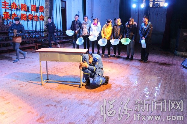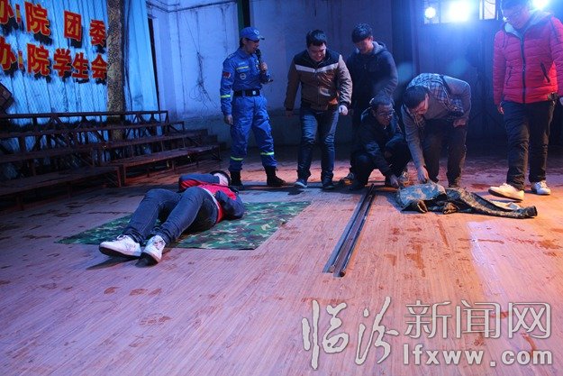 12月11日,在山西管理職業(yè)學(xué)院,我市藍(lán)天救援隊(duì)的隊(duì)員在指導(dǎo)學(xué)生進(jìn)行防范逃生演習(xí)。當(dāng)天,該學(xué)院聯(lián)合市地震局、公安局及藍(lán)天救援隊(duì)為全校師生舉行了一場(chǎng)生動(dòng)的安全教育課,通過實(shí)地疏散演練、地震避險(xiǎn)逃生等實(shí)用型自救項(xiàng)目,加強(qiáng)師生安全責(zé)任意識(shí),共建和諧平安校園。 閆銳鵬 孫國芳 攝