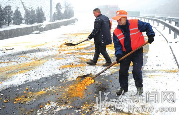 1月24日,我市迎來入冬以來的第一次有效降雪,329省道蒲縣至堯都區部分路段出現積雪,給出行車輛帶來交通安全隱患,市公路局路政支隊和堯都區交警大隊緊急出動,通過警車引導、撒融雪劑、限時通行等措施,多措并舉預防冰雪天氣道路安全隱患的發生。