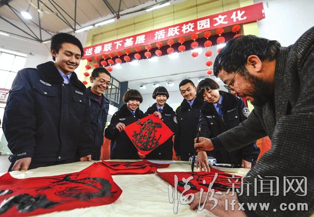 1月26日,臨汾市書法家協會會員們來到臨汾市人民警察學校,為該校師生帶來一堂以春聯為主題的書法課。記者 張蘊強攝