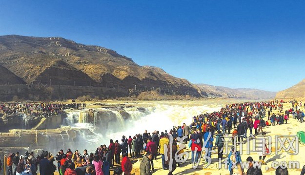春節(jié)期間,我市吉縣黃河壺口瀑布景區(qū)內(nèi)熱鬧非凡,眾多游客“齊聚”景區(qū)拍照留念。記者從壺口景區(qū)了解到,在今年春節(jié)黃金周期間,該景區(qū)共接待游客2.84萬人次,比去年同期增長18.1%。 記者 亢亞莉 攝