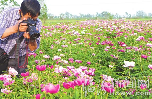 5月4日,數位影友在襄汾縣汾城鎮拍攝美麗的芍藥花。