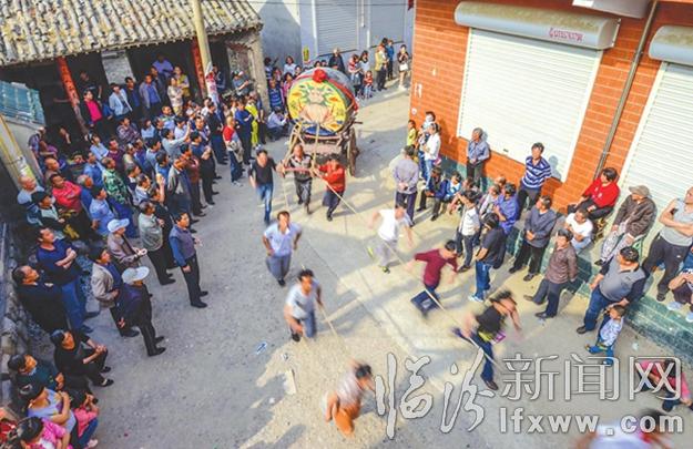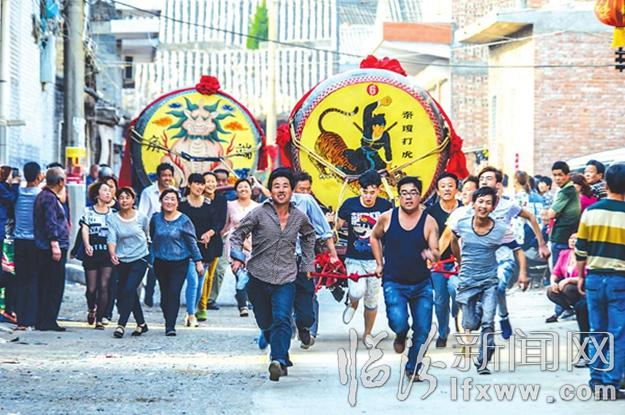 村民現場觀看跑鼓車。