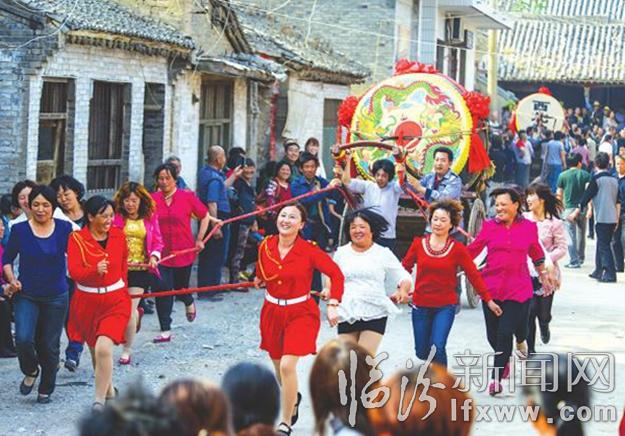 5月4日,農歷三月十六,襄汾縣汾城鎮尉村正在進行著古老罕見的跑鼓車運動,十里八鄉的村民云集尉村,為鼓車手吶喊助威,享受著原生態的文化大餐。