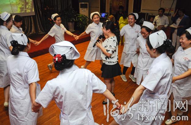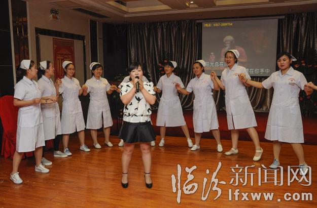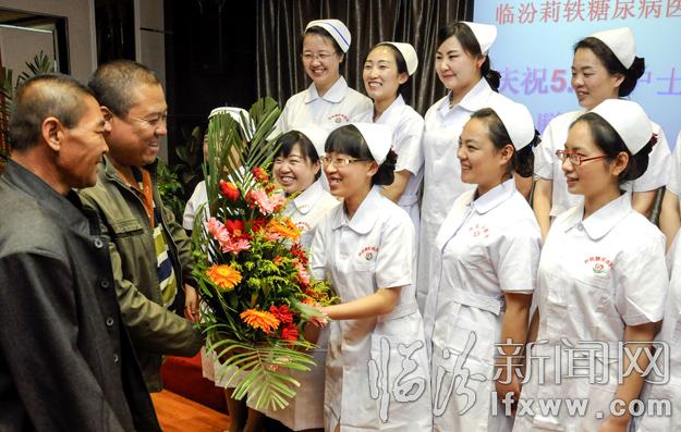 5月11日,在臨汾莉軼糖尿病醫(yī)院,患者代表向護理人員送去鮮花的祝福。當日,該醫(yī)院舉行了“天使頌歌”護士節(jié)主題聯(lián)歡會,通過演講比賽、才藝展示、醫(yī)患聯(lián)歡等環(huán)節(jié),在歡樂的氣氛中慶祝自己的節(jié)日。記者 閆銳鵬 張?zhí)N強 攝