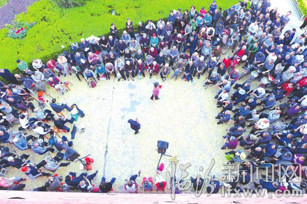 臨汾新聞網訊 蒲劇作為國家級非物質文化遺產保護名錄,在古老的平陽大地擁有無數擁躉。閑暇之余,即使不哼唱一段蒲劇,也得聽聽。5月12日下午,在鼓樓腳下的戲迷樂現場,兩位演員在場地中央開唱,周圍駐足圍觀的群眾多達200余人,場面非常火爆。