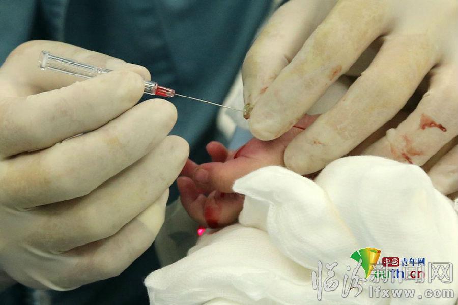 滿八個月的小淑群只有7公斤重。由于血管太細,醫生用小型針頭扎了十幾分鐘才扎進去。