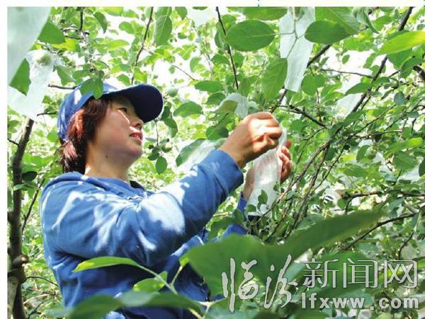 5月22日,曲沃縣樂昌鎮馬莊村果農楊如家玉組織村民正在為蘋果進行疏果、套袋作業。套袋后的蘋果果面光潔、細嫩、色澤均勻,具有較高的市場價值,同時此措施還可以有效減少病蟲害和農藥殘留,提高成果率。
