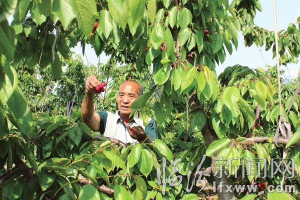 日前,侯馬市東莊村村民常正源正在采摘櫻桃。常正源承包了6畝余地,全部種植櫻桃,今年是第二年結果,預計每畝收入可達5000余元。該村引導村民把握市場機制,大力發展經濟作物來提高農民的收入。