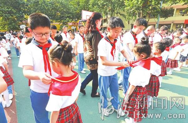 5月26日上午,解放路小學舉行了新少先隊員入隊儀式,該校一年級的465名同學光榮地加入了中國少年先鋒隊。