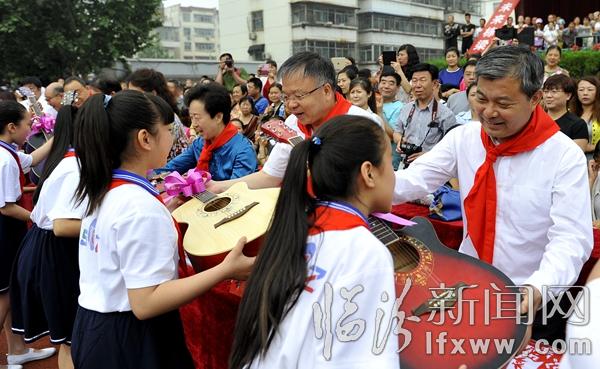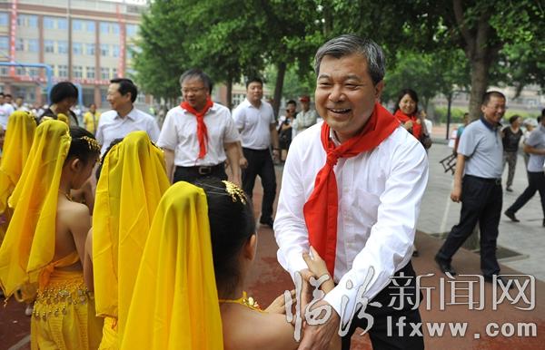 在市第一小學,羅清宇、岳普煜等市領導接受了少先隊員敬獻的紅領巾,觀看了小學生們表演的精彩節(jié)目,并走到孩子們中間,與他們一起載歌載舞,共同迎接美好節(jié)日的到來。羅清宇在講話中向孩子們表示了節(jié)日的祝福,并提出了殷切期望,希望他們珍惜今天的幸福生活,珍惜今天的學習機會,立德明禮、志存高遠,從自身做起,從生活點滴入手,培養(yǎng)良好的行為習慣和道德品質(zhì),讓社會主義核心價值觀融化在心靈里,立志為祖國爭光、為家鄉(xiāng)添彩,做一個胸懷遠大、信念堅定,知識淵博、勇于創(chuàng)新,身心健康、全面發(fā)展的好少年。也希望廣大老師和教職員工忠誠黨的教育事業(yè),繼續(xù)發(fā)揚敬業(yè)奉獻、甘為人梯的精神,精心教書、潛心育人,不僅傳播知識、健康身心,而且傳授美德、陶冶性情,把我們的下一代培養(yǎng)好、教育好,為孩子的成長、成才打好基礎。