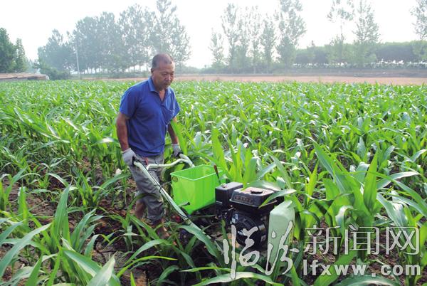 臨汾新聞網(wǎng)訊 進(jìn)入夏季,田間的玉米苗長勢喜人,農(nóng)民朋友們在此期間精心管理,爭取秋糧豐收。圖為曲沃縣樂昌鎮(zhèn)馬莊村村民正在利用新型農(nóng)具柴油施肥機(jī)給玉米耕鋤施肥。張榮 攝