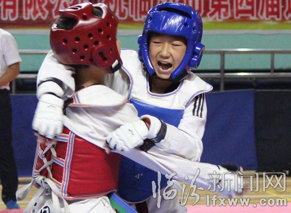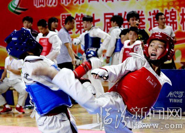 臨汾新聞網訊 8月3日,臨汾市第四屆運動會跆拳道比賽暨第七屆跆拳道錦標賽,在太原鐵路分局臨汾文體活動中心揭開戰幕,來自我市17個區縣(市)代表隊的教練員和運動員總共有878人參加了這項運動,比賽分大學組、高中組、初中組、小學組和幼兒組。跆拳道作為新興的體育項目,憑借著精妙的腿法,強烈的觀賞性和強身健體的功效為廣大中小學生所接受和喜愛,在競技場上,運動員們展開激烈角逐,跆拳道“禮義廉恥”、“忍耐克己”、“百折不屈”的體育精神也時時刻刻激勵著喜愛跆拳道的廣大青少年們。 孫國芳 攝