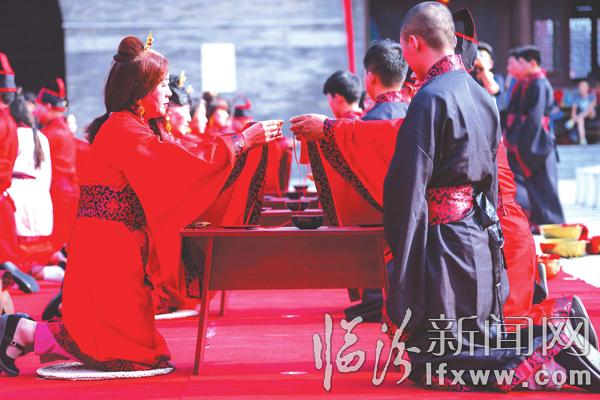 臨汾新聞網訊 8月9日,12對新人在霍州署衙舉行“情定霍州執手百年”漢式集體婚禮,同時,還有8對老年人借此機會慶祝金婚和銀婚。