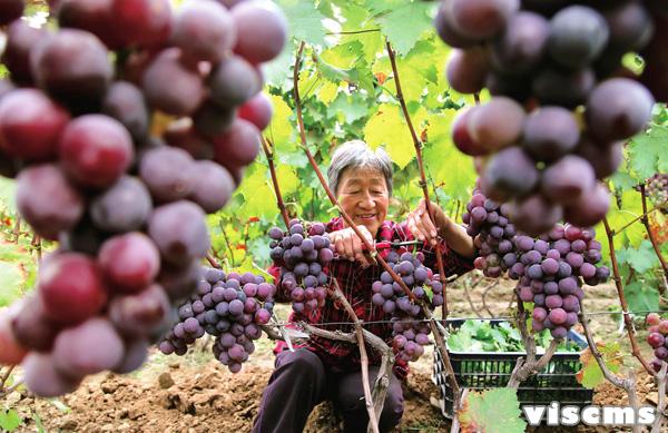 臨汾新聞網訊 9月13日,堯都區賈得鄉北席村的王大媽正在自家葡萄園里收獲葡萄。北席村是當地有名的葡萄種植村,每到收獲的季節,田間地頭的葡萄藤上結滿了果實,村民們也憑借種植葡萄增加了收入。張旦 攝