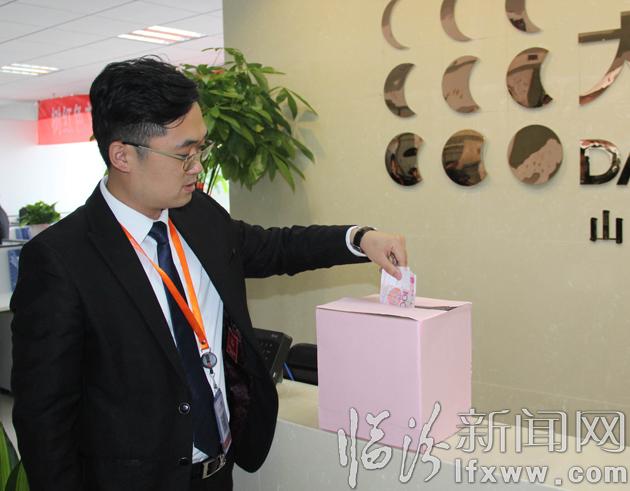 30多位職工們觀看受捐助小孩李欣澎基本信息和各界愛心人士捐助情況的PPT,并根據自己的情況捐獻自己的一份愛心,共捐款達6200元。當日,大大集團臨汾市公司總經理李敏到醫院把愛心款給孩子李欣澎父親手中,李敏說:“我們一直在做公益事業,走進學校和敬老院等,這次盡自己的一點微薄之力幫助孩子,貢獻自己的一份愛心,希望孩子盡快好起來,我們還會持續的關注下去,為這個家庭點燃希望之火。”