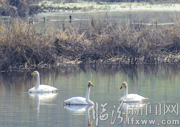 臨汾新聞網(wǎng)訊 美麗的汾河河畔,游來了圣潔的白天鵝,給秋日的汾河帶來一份濃濃的喜慶氣氛。前來觀看的游客絡(luò)繹不絕,大家紛紛拍照留影,流連忘返。圖為10月21日在汾河景區(qū)內(nèi),白天鵝正在濕地休憩。