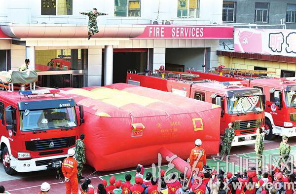 臨汾新聞網訊 11月1日,臨汾晚報小記者在觀看消防戰士逃生表演。當日,80名臨汾晚報小記者走進堯都區消防中隊,了解消防器材、學習滅火常識、觀看逃生表演、采訪軍人生活。 記者 李虎威 攝