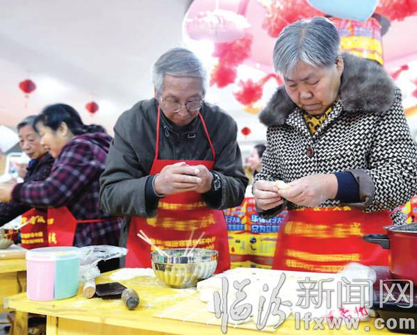 臨汾新聞網訊 近日,我市多家愛心企業和不少愛心人士走上街頭,舉行了“這個冬天不會冷”大型送溫暖活動,把親手包的百盒熱氣騰騰的餃子送到了奉獻在一線的環衛工人手中,讓她們在寒冷的冬日倍感溫暖。圖為一對老年夫妻正在包溫暖餃子。 張天杰攝