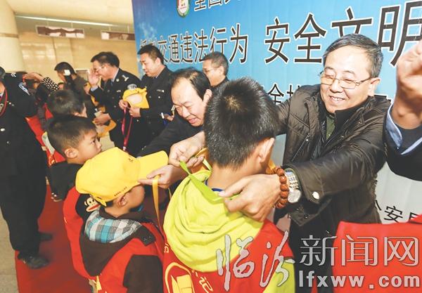 臨汾新聞網訊“我宣誓:認真學習交通安全知識,自覺遵守交通法規,紅燈停、綠燈行;過馬路要走斑馬線,不乘坐無牌等違法車輛……”11月29日,在臨汾交警支隊交通安全警示教育基地,臨汾晚報的二百余名小記者齊聚在此,參加了“12·2全國交通安全日——抵制交通違法行為安全文明出行”活動,在活動中,臨汾交警支隊為小記者代表頒發了《少年兒童道路交通安全執照》。
