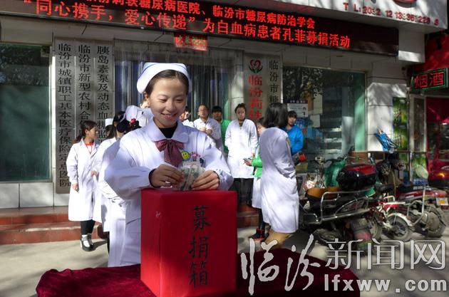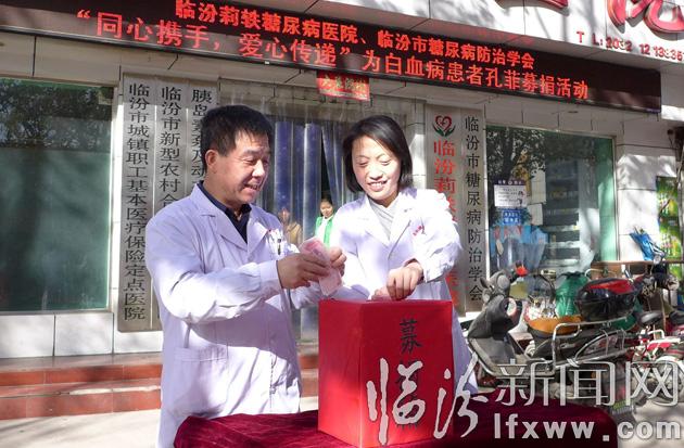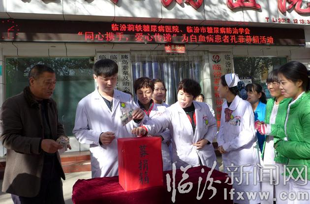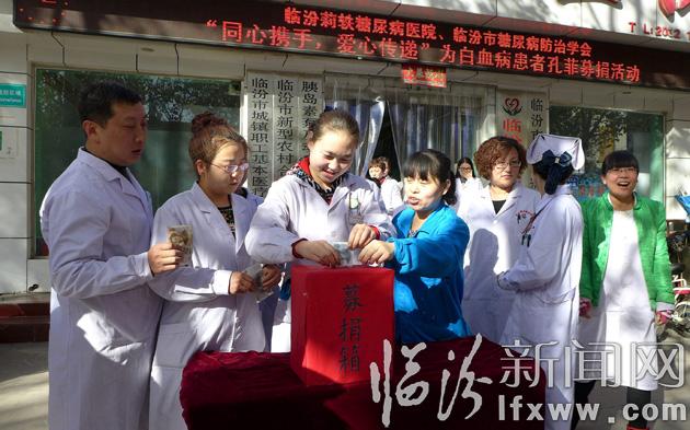 臨汾新聞網(wǎng)訊 12月14日,臨汾莉軼糖尿病醫(yī)院的醫(yī)護人員在進行愛心捐款。該醫(yī)院從本報獲悉霍州白血病女孩孔菲求助的報道后,組織了全院醫(yī)護人員進行了愛心募捐,同時,住院的患者也紛紛加入到愛心募捐活動中來,用實際行動參與到公益活動中來。 本報記者 閆銳鵬 攝