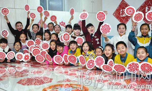 臨汾新聞網訊 2015年12月30日,臨汾市第一小學“剪紙興趣班”的學生們在展示新年作品。日前,該校“剪紙興趣班”開展了“巧手剪紙迎新年”主題活動。學生們在老師的指導下,精心創作了新年“團花”剪紙作品,以傳統的剪紙藝術迎接新年的到來。記者 閆銳鵬攝