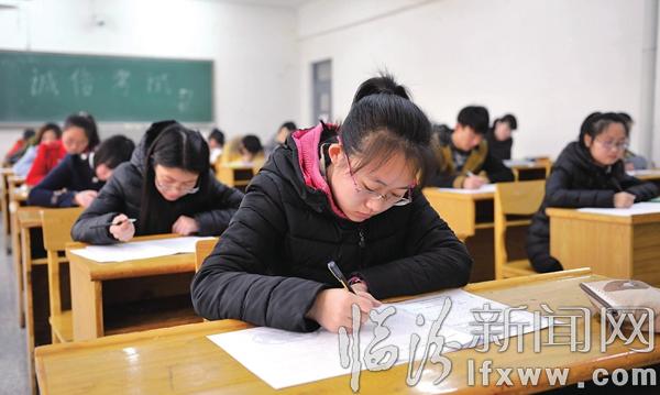 臨汾新聞網訊 1月12日,在山西師范大學現代文理學院第一學期期末考試考場,考生在無人監考的考場里答題。該學院將大學生誠信教育納入日常教學中,在本學期的期末考試中,首次設立6個“無人監考,誠信應試”試點考場。參加誠信應試的學生都是經過學院教學部門對各班級學生的學風學紀、日常表現、誠信教育等綜合考核后篩選出來的。截至1月12日,該校已有790人次參加了無人監考期末考試。
