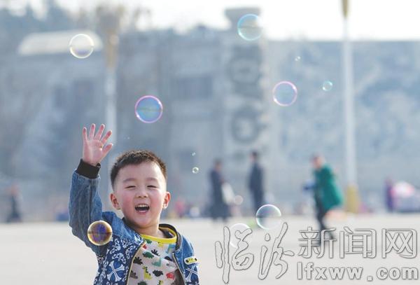 臨汾新聞網訊 日前,我市晴好天氣持續,氣溫也逐漸回升,到處洋溢著春天的氣息。圖為汾河公園九州廣場內,小朋友玩得不亦樂乎。