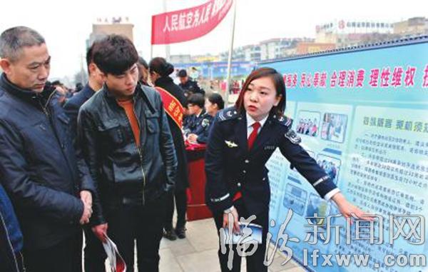 臨汾新聞網訊 臨汾民航機場的工作人員為市民介紹機場的特殊旅客乘機知識和新開航線。