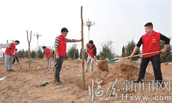 臨汾新聞網訊 3月17日,志愿者在臨汾民航機場附近植樹。當日,團市委、市環保局、臨汾民航機場、市青聯的志愿者們聯合舉行“保護母親河、共建青年林”植樹活動,旨在倡導大家保護環境,美化生活,播綠家園。 記者 鄭遠飛 攝