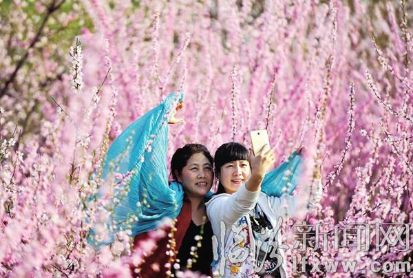 臨汾新聞網(wǎng)訊 近日,市區(qū)汾河公園景區(qū)里垂柳吐綠,桃花、迎春花競相綻放,一派春意盎然的景色。圖為市民在盛開的桃花叢中拍照留念。